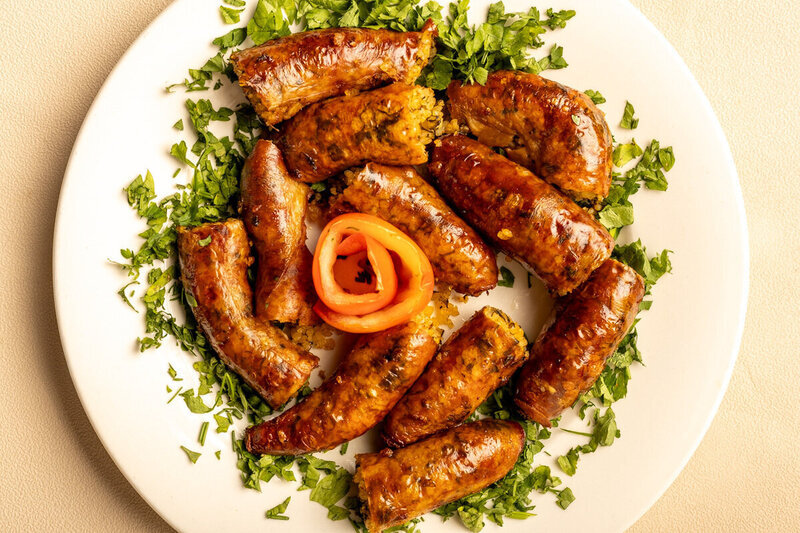 Rice-stuffed sausage casing, boiled & fried — crispy outside, soft inside