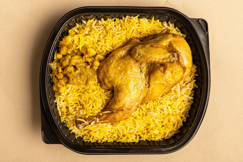 Half chicken with turmeric & chickpea rice
