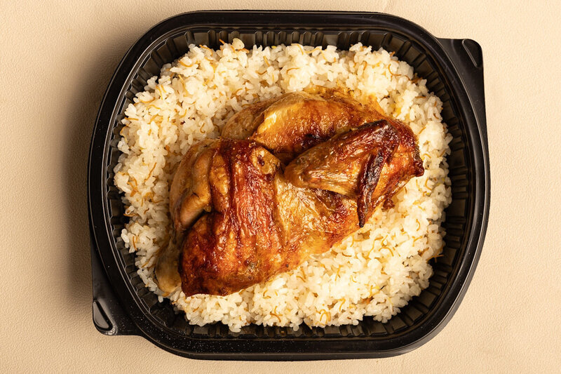 Half grilled chicken with white vermicelli rice